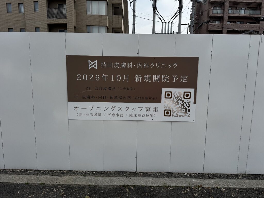 今年10月の「持田皮膚科・内科クリニック」開院に向け、現在、着々と建築工事が進んでおります。