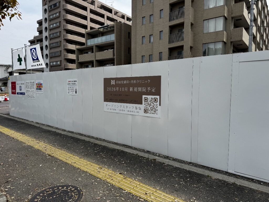 そしてこの度、建設中の壁面に「オープニングスタッフ募集」の求人看板を設置いたしました!お近くを通られた際は、ぜひ目をとめていただけますと幸いです。
